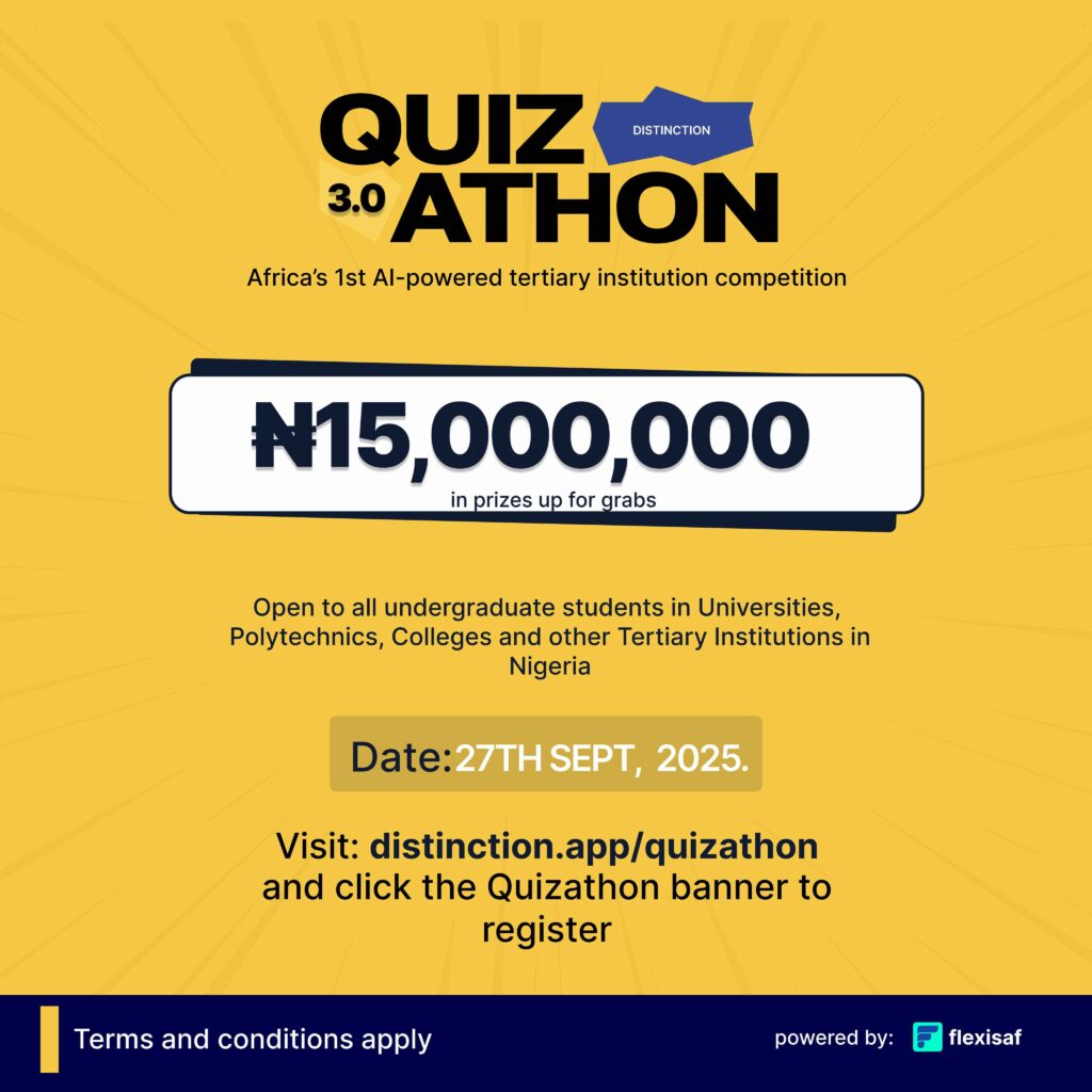 Quizathon 3.0 isn’t just about winning prizes. It’s a chance for you to challenge yourself, engage with other students across Nigeria, and demonstrate your knowledge and speed. Whether you’re aiming for that ₦1 million prize or just want to climb the leaderboard, the rules are clear — stay accurate, stay consistent, and stay active. Get ready to show us what you’ve got!